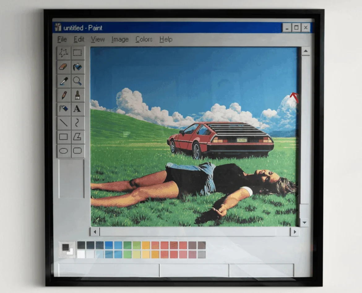 One of the most significant physical pieces in the show is MS Paint, a hand-painted sculpture carved in High-Density Urethane (HDU). Priced at $18,000, the work is an exact physical recreation of the Windows 98 Microsoft Paint user interface. By elevating a rudimentary digital tool to the status of fine art sculpture, Parisella explores the concept of digital nostalgia. It serves as a reminder of a time when digital creation was unburdened by the complexities of algorithmic surveillance, focusing instead on the raw potential of the pixel.
